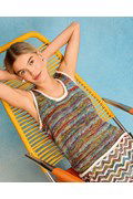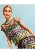 Mouwloze damestruitje met een rechte halslijn. Het fraaie kleurverloop van Lana Grossa Cotonella Multi zorgt voor een unieke uitstraling en ongekend draagcomfort. Ervaar zelf de luxe van Pima katoen en creëer een tijdloze aanvulling op uw garderobe.