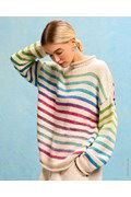Damestrui met rolkraag en een betoverend gemeleerd streeppatroon. Deze trui is gemaakt van garen Lana Grossa Cotonella Multi, Pima katoen dat zorgt voor een zijdezacht, ademend en kleurrijk resultaat. Dit unieke garen en patroon creëren samen een comfortabel kledingstuk met een moderne uitstraling.