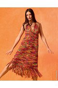 Gehaakte jurk voor de zomer, met een trendy driehoekige bovenkant en speelse franjes. Lana Grossa Cotonella garen zorgt voor een zijdezachte textuur en ademend comfort.