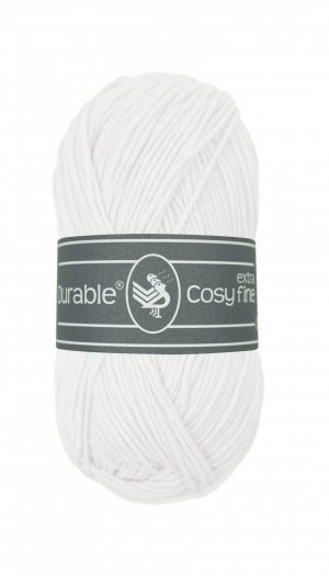 Durable Cosy extra fine 0310 white is een dunne en fijne draad van 58% katoen en 42% polyamide.