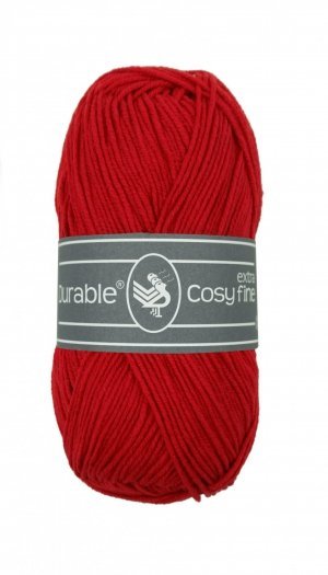 Durable Cosy extra fine 0318 Tomato is een dunne en fijne draad van 58% katoen en 42% polyamide.