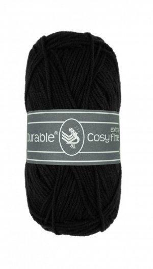 Durable Cosy extra fine 0325 Black is een dunne en fijne draad van 58% katoen en 42% polyamide.