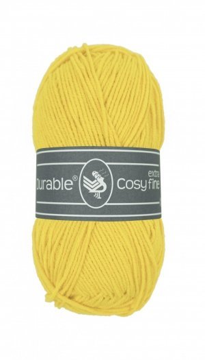 Durable Cosy extra fine 2180 Bright Yellow is een dunne en fijne draad van 58% katoen en 42% polyamide.