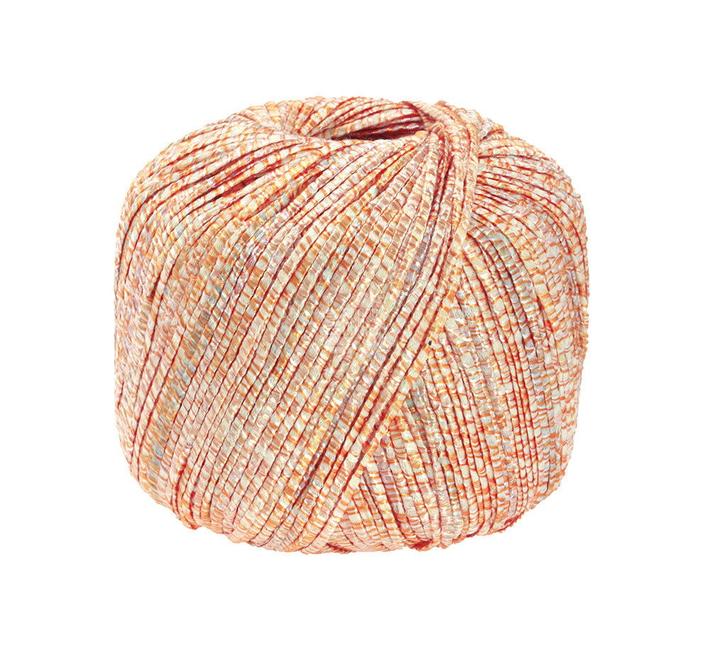 Lana Grossa Alessia 17 zalm naturel heeft een witte katoenen basis die omwikkeld is met een polyamide draad. De recyclede polyester draad steekt in kleur af tegen de witte basis. Dit geen je brei- en haakwerk een luxe uitstraling.