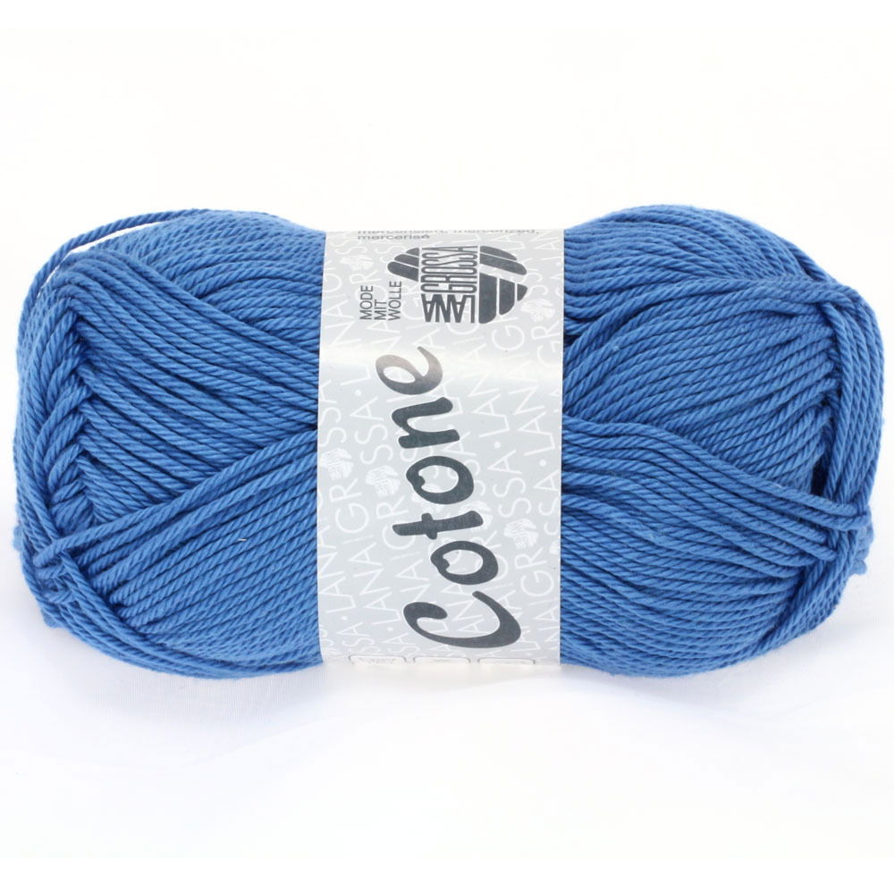 Lana Grossa Cotone 011 blauw is een 100% glanskatoenen draad, ideaal om mee te haken en te breien. Het garen is geschikt voor dames-, heren- en kinderenkleding, poppen, knuffels en amigurumis. Het Cotone katoen is in zeer veel kleuren verkrijgbaar, waardoor er prachtige kleurverlopen kunnen worden gemaakt en ieder project een specifieke kleur kan krijgen.