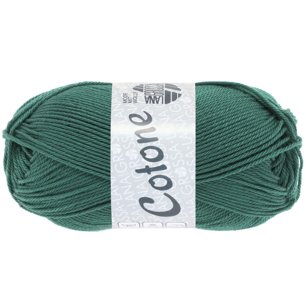 Lana Grossa Cotone 079 smaragd groen is een 100% glanskatoenen draad, ideaal om mee te haken en te breien. Het garen is geschikt voor dames-, heren- en kinderenkleding, poppen, knuffels en amigurumis. Het Cotone katoen is in zeer veel kleuren verkrijgbaar, waardoor er prachtige kleurverlopen kunnen worden gemaakt en ieder project een specifieke kleur kan krijgen.