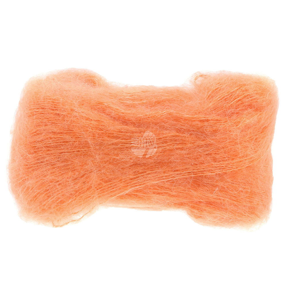 Lana Grossa Setasuri 22 oranje zacht is een fijne en harige draad van zijde en fijne alpaca wol. Dit garen geeft een luchtig en soepel breiwerk dat warm en zacht aanvoelt. Setasuri geeft in combinatie met andere garens een mohaitlook aan je kleding.