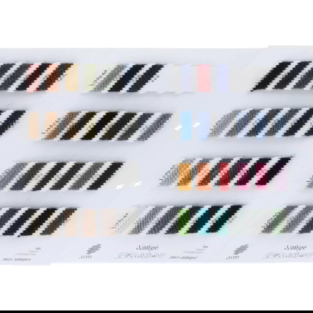 Lopi stalenkaart bieden verschillende samples van garen. De schaduwkaaren met voorbeelden geven u een goed idee van de kleur en het gevoel van het garen. Verschillende Lopi soorten beschikbaar. Een stukje.