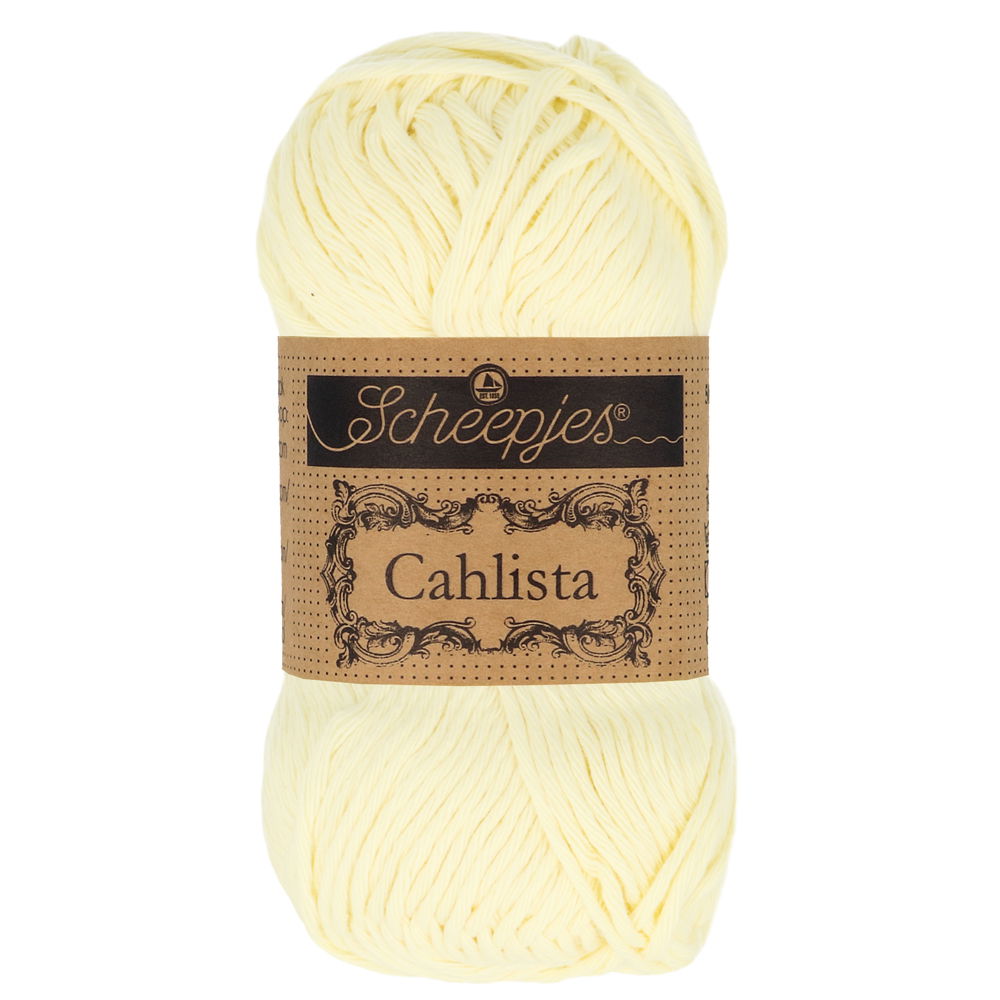 Scheepjes Cahlista is een 100% katoenen garen met matte uitstraling. Het garen heeft een perfecte twijning, zodat de draad tijdens het verwerken niet splijt en toch zeer soepel valt. Dit garen is double gassed, door deze speciale behandeling zijn overtollige katoenvezels uit het garen verwijderd en daardoor minder pluist