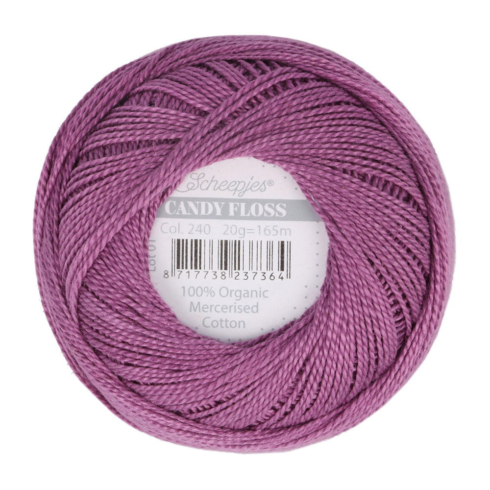 Scheepjes Candy Floss 20gr - 240 Amethyst, het garen is gemaakt van 100% biologisch gemerceriseerd katoen. Het garen heeft een hoge twijning en een prachtige glans, wat zorgt voor mooie gedefinieerde steken in je werk. Het garen splijt niet en is geschikt voor uiteenlopende technieken en projecten, zoals borduren, Sashiko, frivolité, handquilten, micro-haakprojecten zoals amigurumi en sieraden of het aanbrengen van gehaakte randen aan dekens, accessoires en kleding.