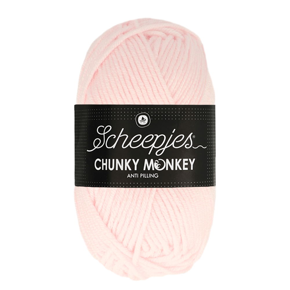 Chunky Monkey is een draad met textuur en geschikt voor pendikte nr 5.0 mm. De draad is vervaardigd van 100% Premium Acryl is lichtgewicht, hypo-allergeen, onderhoudsvriendelijk en beschikbaar over een zeer ruime kleurenpalet. Het garen is anti Pilling garen. Door gebruik van handgemaakte items, of het nu een kledingstuk of knuffel is, kunnen er kleine bolletjes van vezels op het oppervlak ontstaan. Dit verschijnsel heet Pilling. Scheepjes Chunky Monkey heeft een speciale behandeling ondergaan waardoor de kans hierop minimaal is.