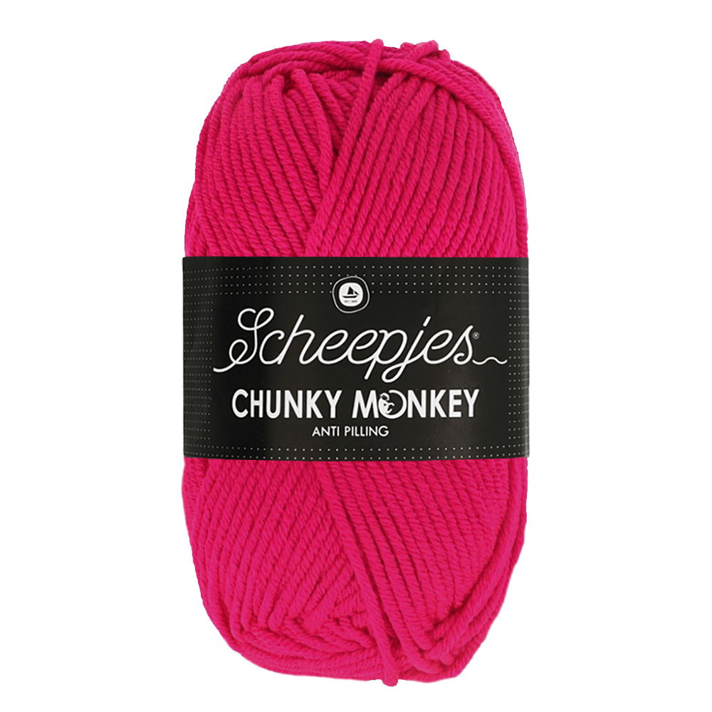Chunky Monkey is een draad met textuur en geschikt voor pendikte nr 5.0 mm. De draad is vervaardigd van 100% Premium Acryl is lichtgewicht, hypo-allergeen, onderhoudsvriendelijk en beschikbaar over een zeer ruime kleurenpalet. Het garen is anti Pilling garen. Door gebruik van handgemaakte items, of het nu een kledingstuk of knuffel is, kunnen er kleine bolletjes van vezels op het oppervlak ontstaan. Dit verschijnsel heet Pilling. Scheepjes Chunky Monkey heeft een speciale behandeling ondergaan waardoor de kans hierop minimaal is.
