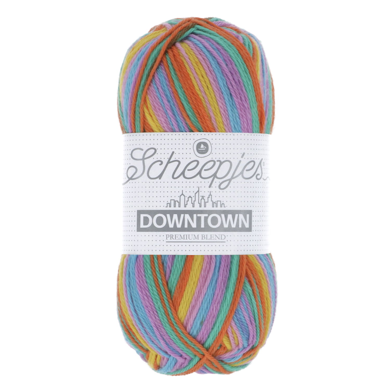 Downtown is een slijtvast garen van 75% extra fijne merinowol en 25% nylon in energieke gemêleerde kleuren. Het garen is zeer geschikt voor het breien van sokken, breisels zijn warm en hebben een ademende kwaliteit en dankzij het nylon slijtvast en gemakkelijk in onderhoud. Downtown is veelzijdig, zo voelt het garen zacht aan en valt het mooi en soepel, zodat het ook ideaal is voor het breien of haken van kleding en modeaccessoires. Qua kleur, garendikte en samenstelling sluit Scheepjes Downtown naadloos aan bij Metropolis, een garen in schitterende unikleuren. Dat biedt nog veel meer mogelijkheden, zoals truien of vesten met gemêleerde mouw- en halsboorden of gestreepte sokken met een effen hiel en teen.
