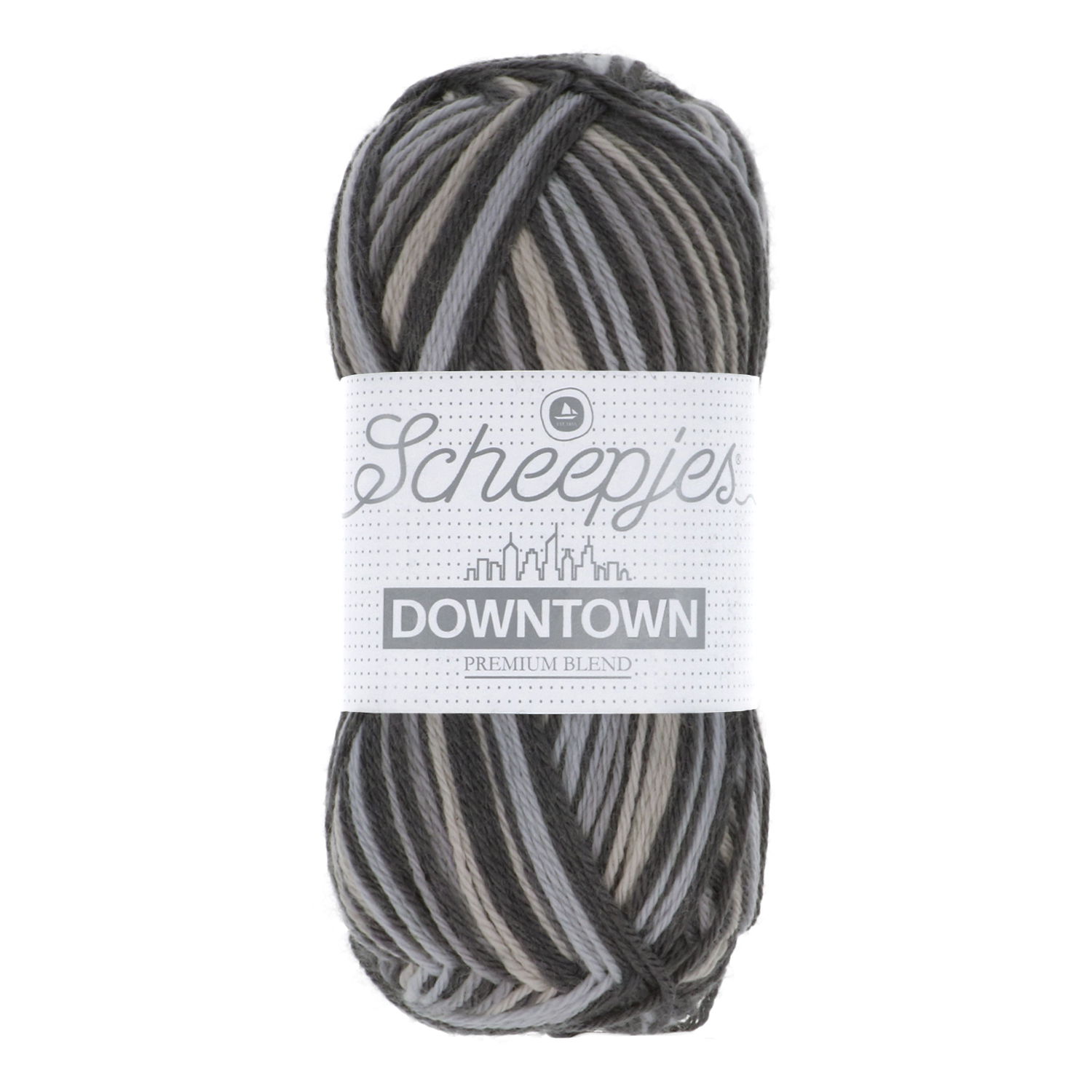 Downtown is een slijtvast garen van 75% extra fijne merinowol en 25% nylon in energieke gemêleerde kleuren. Het garen is zeer geschikt voor het breien van sokken, breisels zijn warm en hebben een ademende kwaliteit en dankzij het nylon slijtvast en gemakkelijk in onderhoud. Downtown is veelzijdig, zo voelt het garen zacht aan en valt het mooi en soepel, zodat het ook ideaal is voor het breien of haken van kleding en modeaccessoires. Qua kleur, garendikte en samenstelling sluit Scheepjes Downtown naadloos aan bij Metropolis, een garen in schitterende unikleuren. Dat biedt nog veel meer mogelijkheden, zoals truien of vesten met gemêleerde mouw- en halsboorden of gestreepte sokken met een effen hiel en teen.