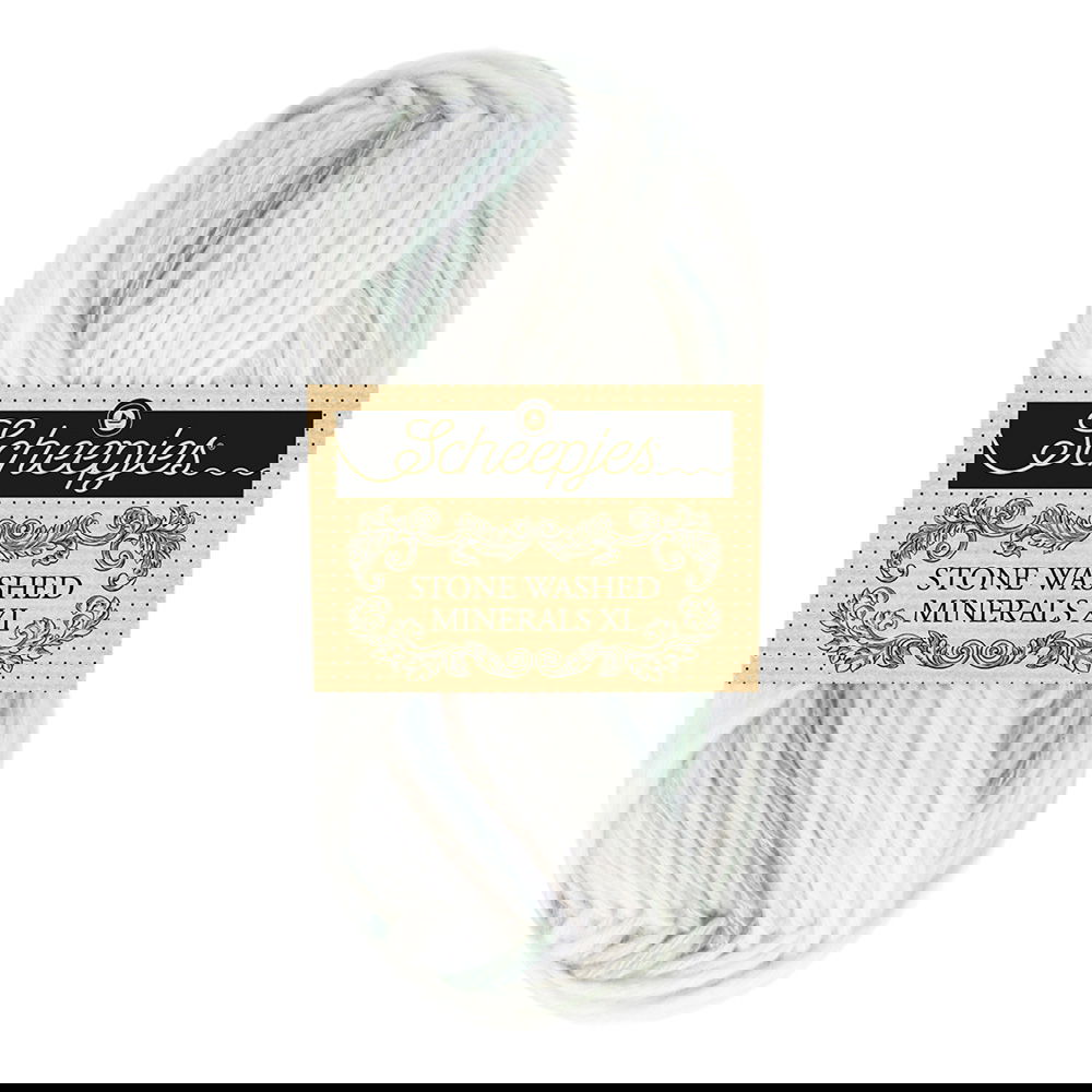Scheepjes Stone Washed Minerals XL is een variatie op het vertrouwde Scheepjes Stone Washed XL. Hetzelfde zijdezachte garen, maar dan met een prachtig gemêleerd effect. Het karakteristieke Stone Washed uiterlijk komt door de unieke productiemethode van dit garen: in een netje van ecru-kleurig katoen worden kleurige en donzige acrylvezels geblazen. Het garen heeft de ademende kwaliteit van katoen, maar is dankzij het acryl sterk en gemakkelijk in onderhoud. Die combinatie maakt Scheepjes Stone Washed Minerals XL ideaal voor de meest uiteenlopende brei- en haakprojecten en bovendien geschikt voor elk seizoen.