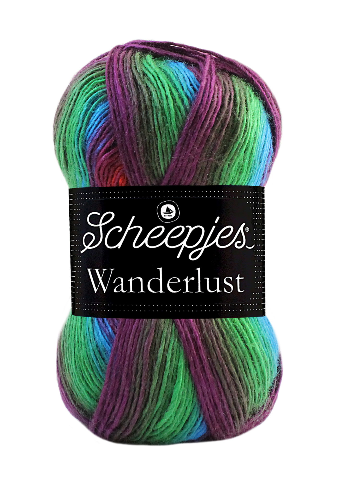 Wanderlust van Scheepjes is een enkel gesponnen en toch zeer sterk garen. De bollen zijn gemêleerd in prachtige stralende kleuren en  verlopen na een groot aantal meters in kleur. Laat je verrasssen door de kleurverloop, aan de buitenkant van de bol kun je niet zien welk kleurenpallet je aan de binnenkant van de bol kunt verwachten. Door voor- en achterpand in één keer op een rondbreinaald te breien, kan een een gelijk kleurenpatroon aan voor- en achterkant worden verkregen. Het 100% acryl garen, heeft een natuurlijke uitstraling, zeer geschikt voor mensen die niet van het dragen van wol houden, maar wel graag een natuurlijk ogend garen willen.
