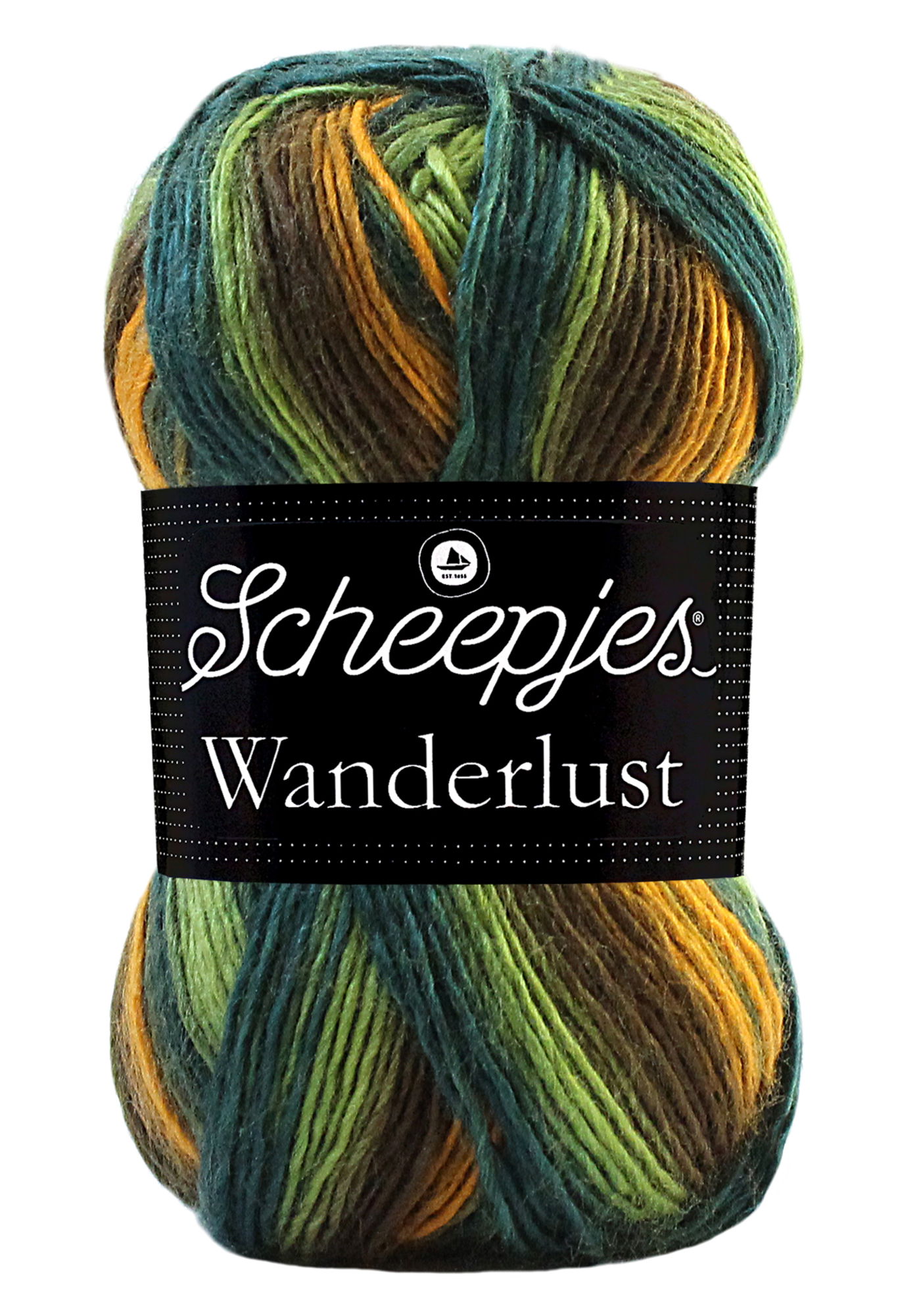 Wanderlust van Scheepjes is een enkel gesponnen en toch zeer sterk garen. De bollen zijn gemêleerd in prachtige stralende kleuren en  verlopen na een groot aantal meters in kleur. Laat je verrasssen door de kleurverloop, aan de buitenkant van de bol kun je niet zien welk kleurenpallet je aan de binnenkant van de bol kunt verwachten. Door voor- en achterpand in één keer op een rondbreinaald te breien, kan een een gelijk kleurenpatroon aan voor- en achterkant worden verkregen. Het 100% acryl garen, heeft een natuurlijke uitstraling, zeer geschikt voor mensen die niet van het dragen van wol houden, maar wel graag een natuurlijk ogend garen willen.