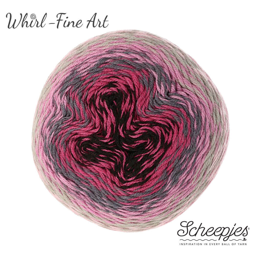 Scheepjes Whirl - Fine Art, is een superwash merinowolmix en vormt een uitstekende combinatie met Scheepjes Merino Soft. Deze garens hebben dezelfde zijdeachtige uitstraling en voelen allebei heerlijk zacht aan. Scheepjes Whirl - Fine Art heeft hetzelfde subtiele en lange kleurverloop als Scheepjes Whirl. Whirl - Fine Art is verkrijgbaar in verschillende schitterende kleurencombinaties, vernoemd naar en geïnspireerd door belangrijke kunststromingen die uw gebreide of gehaakte omslagdoeken, kleding of accessoires omtoveren tot een heus kunstwerk.