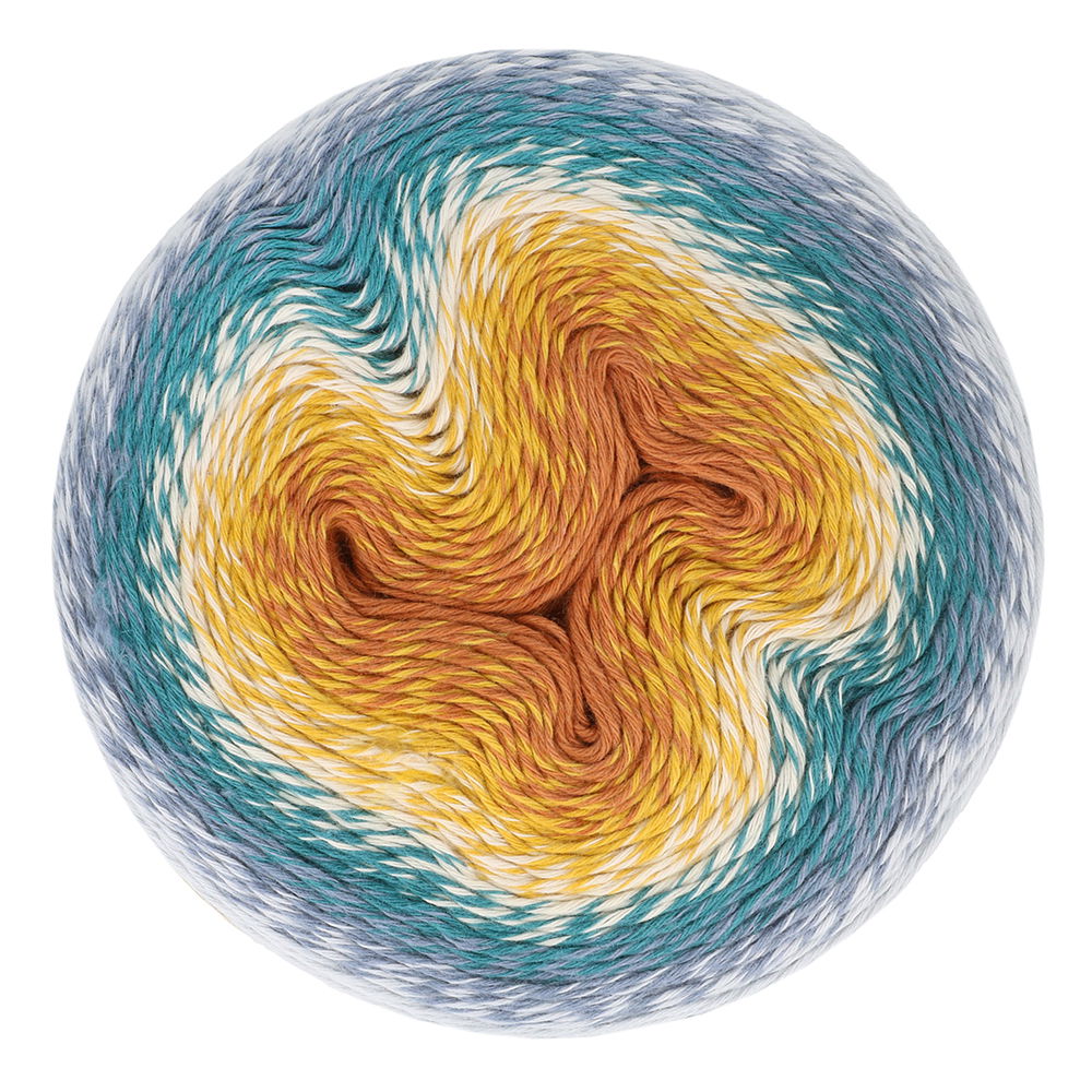 Prachtig garen, waanzinnig mooie kleuren. Katoenmix die voelt & haakt als katoen. Lijkt duur, maar ll van 1000m kan er n heel zomertruitje uit.