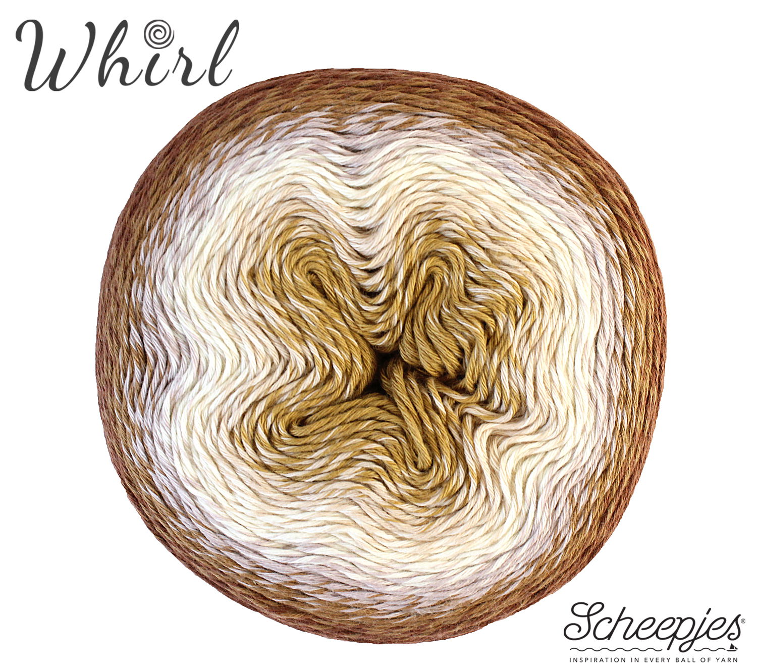 Whirl van scheepjes is een volledig getwijnd garen, het garen splijt hierdoor niet tijdens het breien of haken. Het gemeleerde garen draagt luchtig en is licht in gewicht.