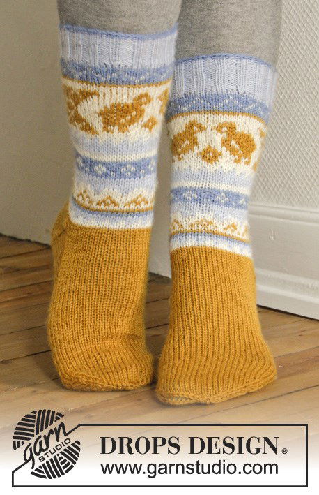 Breipatroon paas sokken met Noors patroon van Drops garen Karisma.