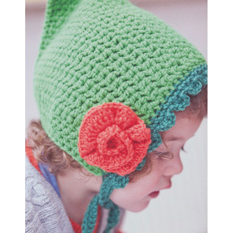 Gehaakt kindermutsje met bloem. Het mutsje is met dubbele draad gehaakt.