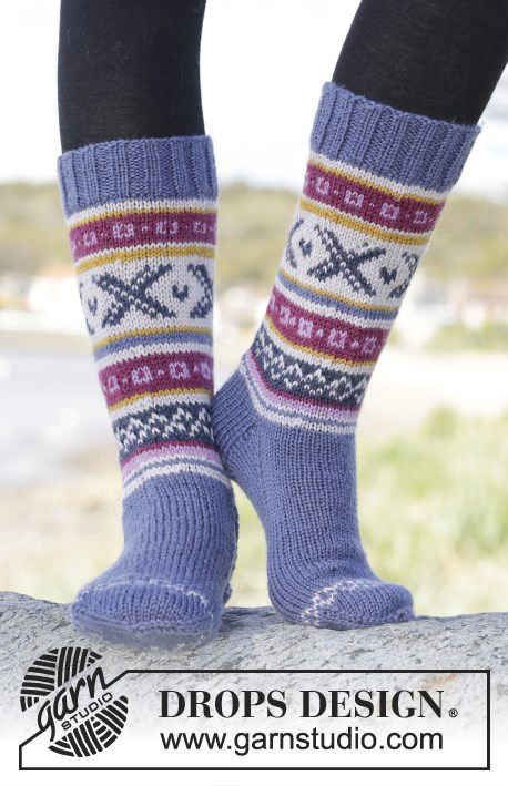 Gebreide DROPS sokken met Noors patroon van ”Karisma”. Maat 35 - 46