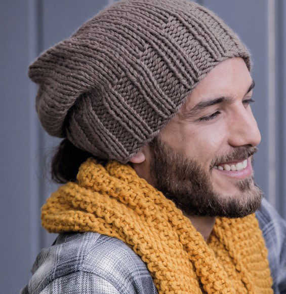 Muts met sjaal in ribbel- en tricotsteek