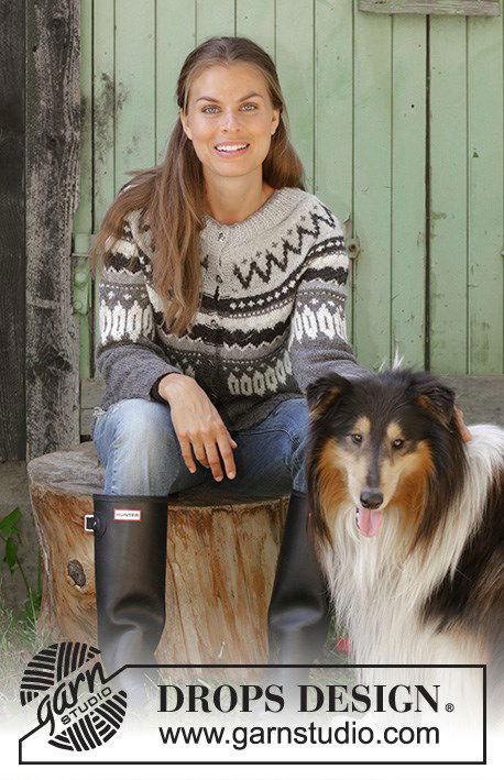 Steingard Cardigan, breipatroon dames vest met ronde pas in Scandinavisch inbreipatroon. Het vest is gebreid van het DROPS garen Puna.