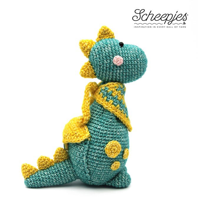 Haakpatroon geeftbeestje Dino, gemaakt van Scheepjes Stone Washed.