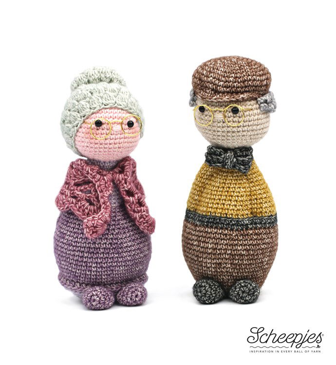Haakpatroon geeftbeestje opa en oma, gemaakt van Scheepjes Stone washed.