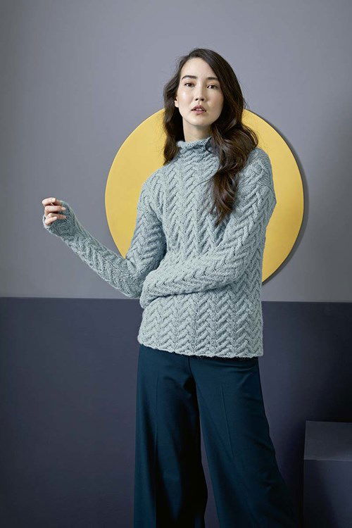 Breipatroon damestrui met kabels, gemaakt van Lang Yarns Merino 200 bebe en Alpaca Superlight.