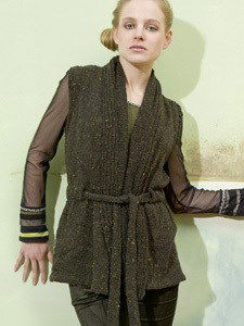 Breipatroon tuniek voor dames met sjaalkraag en centuur. Dit mouwloze vest is gebreid van het Lang Yarns Donegal.