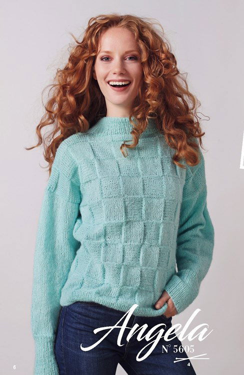 Lammy Yarns breipatroon damestrui in blokpatroon met een breed iets opstaand boordje. Deze zachte en comfortabele trui is gemaakt van het garen Lammy Yarns Angela.