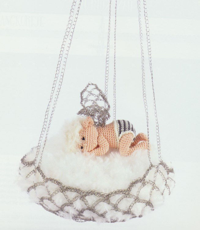 Haakpatroon slapend baby elfje in hangmand. ca 17 cm