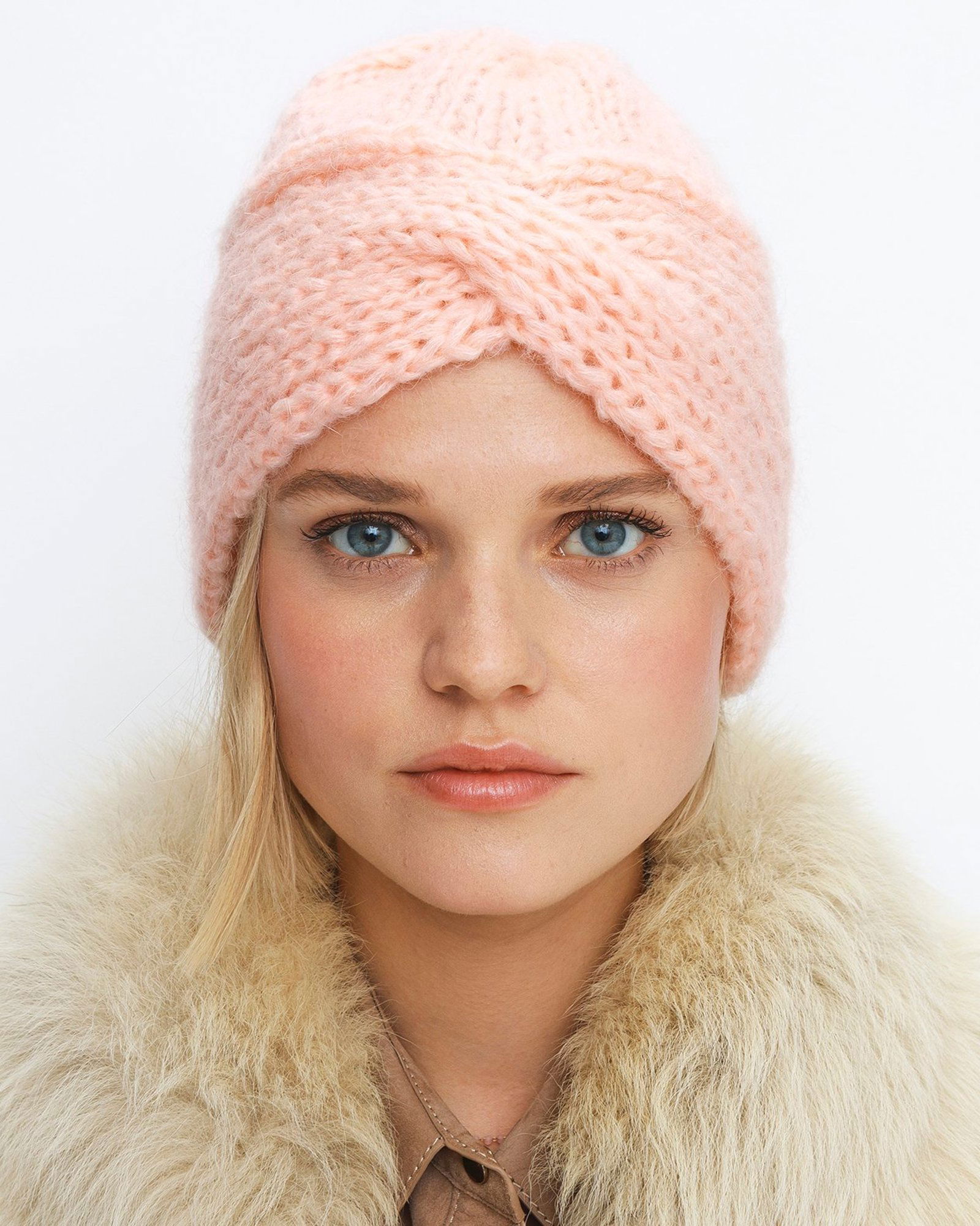 Breipatroon muts Thomasine met een twist aan de voorkant, deze is gemaakt van Phildar Maxi Mohair.