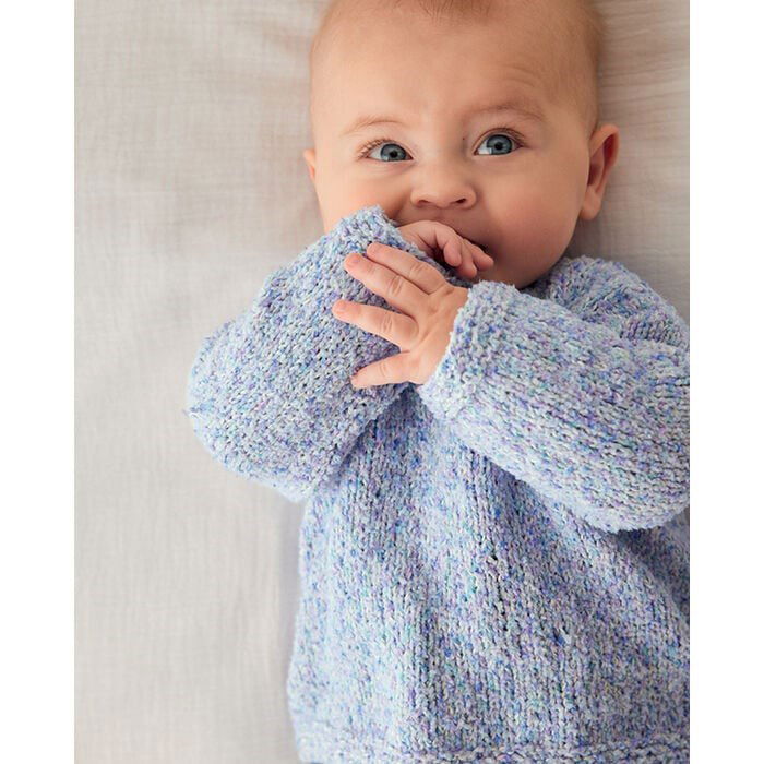 Phildar breipatroon babytruitje met boordjes in ribbelsteek Dit gemêleerde vestje is gemaakt van het garen Phil Tutti Frutti.