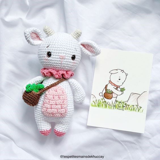 Haakpatroon geit Willis, gemaakt van Scheepjes Softfun en Softfun Denim. Formaat; 20 cm