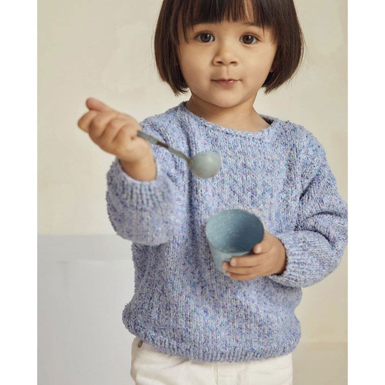 Breipatroon kindertrui Charline in boordsteek, tricotsteek en ribbelsteek. De trui is gebreid van het Phildar garen Phil Tutti Frutti.