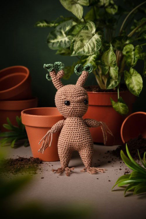 Haakpatroon voor een schreeuwende Mandragora, gemaakt van Scheepjes Catona. Formaat; 20 cm