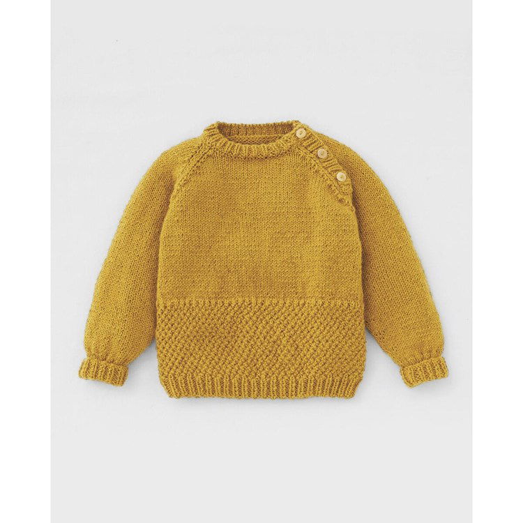 Phildar breipatroon Kilian, kindertrui met knoopsluiting in raglanmouwen. Deze in tricotsteek gebreide trui is gemaakt van het garen Phil Sport.