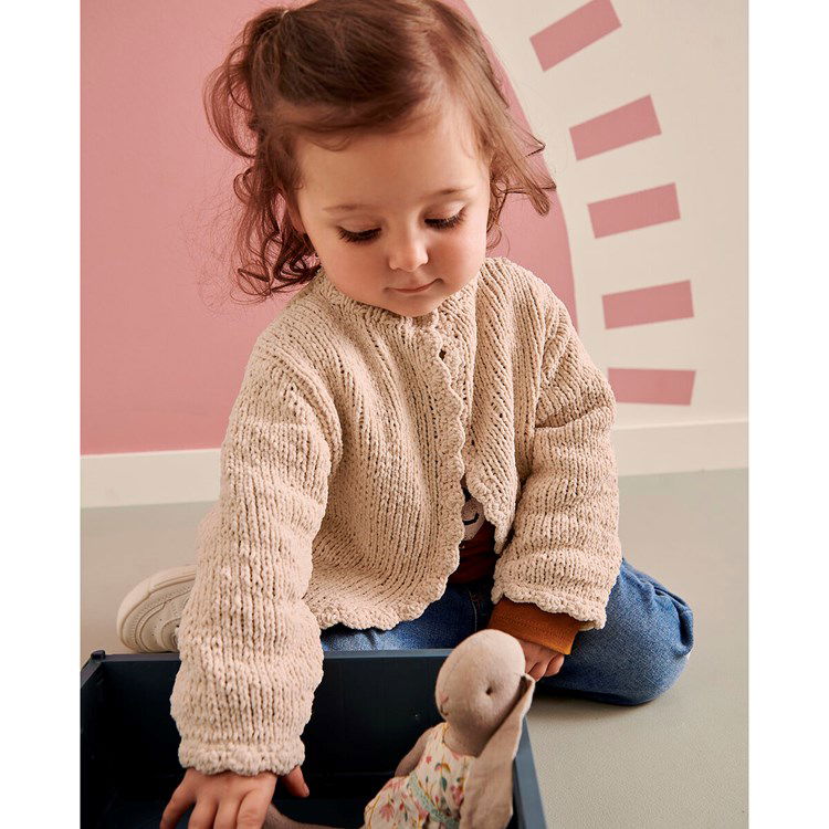 Phildar breipatroon Lola, meisjes vest met schulprand. Dit vestje met smal opstaand halsboordje is gemaakt van het garen Phildar Phil Cheri.