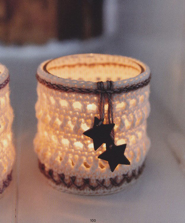 Haakpatroon van ontwerpster Wendy van Delden, potje voor waxinelichtje, gehaakt van het garen Scheepjes Stone Washed.