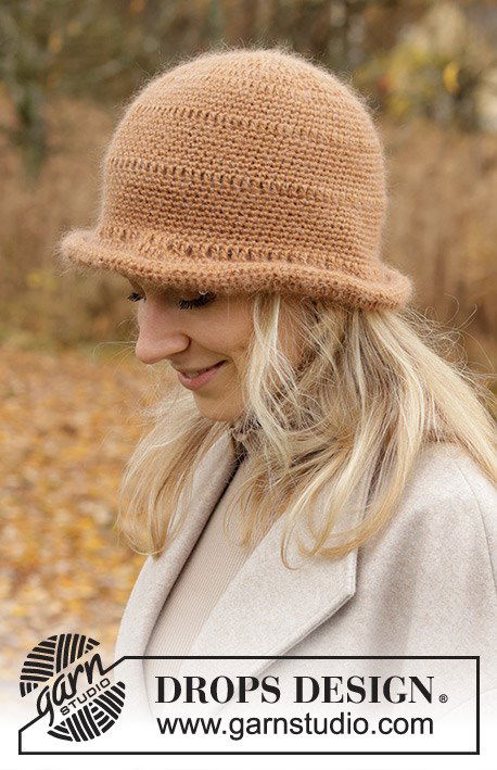 GARNSTUDIO haakpatroon Tree Rings Hat, vissershoedje met kantpatroon en rand. Deze muts is gemaakt van het garen DROPS Flora en DROPS Kid-Silk.