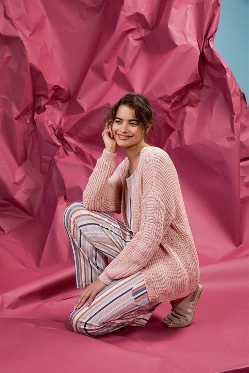 Lang Yarns breipatroon damesvest in halvepatentsteek en ribbelpatroon, gemaakt van het garen Lang Yarns Soft Coton.