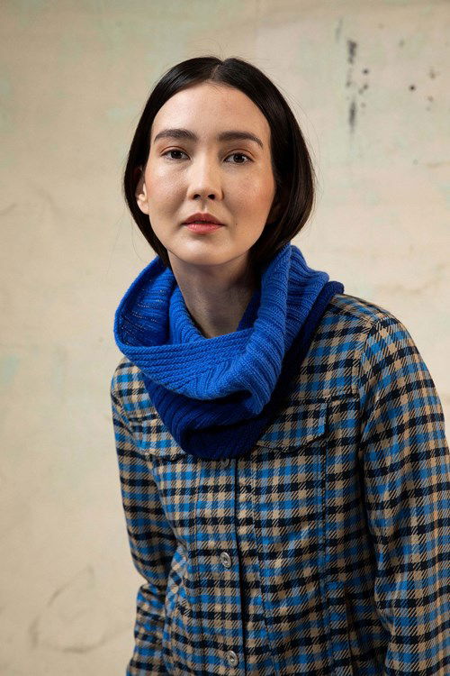 Lang Yarns breipatroon Louise, ronde gekleurde damessjaal. Deze meerkleurige sjaal is gemaakt van het garen Lang Yarns Cashmere Premium.
