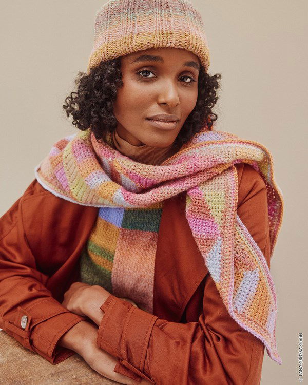 Lana Grossa muts gebreid in boordpatroon, gemaakt van het garen Lana Grossa Dipinto.