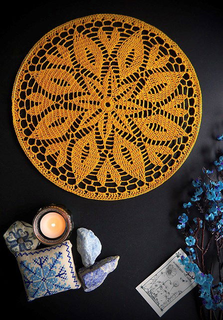 Haakpatroon waarbij Mark Roseboom zich heeft laten inspireren door de zonnebloemvelden in de Ukraine. Gehaakte cirkel met een doorsnee van 30 cm, gehaakt van het garen Scheepjes Maxi sweet treat.