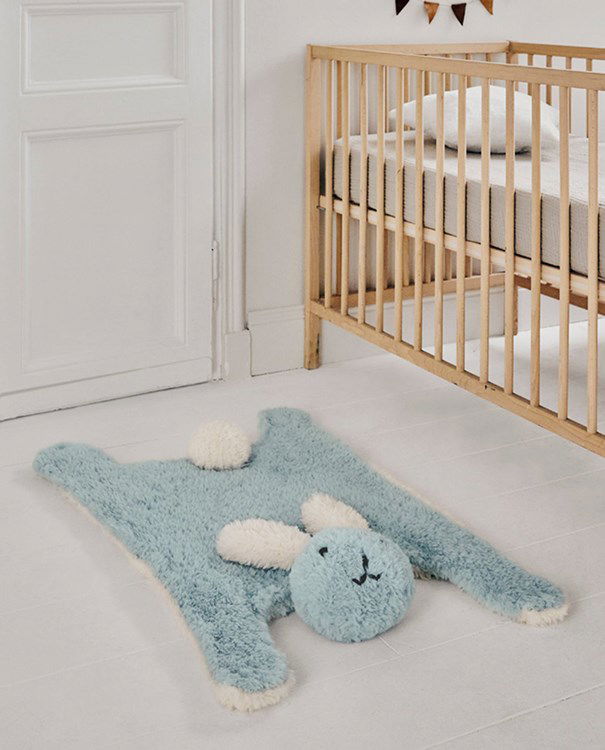 Phildar breipatroon Bunny, mat in de vorm van een konijn. Dit heerlijk zachte vloerkleed van ca 50 a 80 cm, is gemaakt van het garen Phil Inuit.