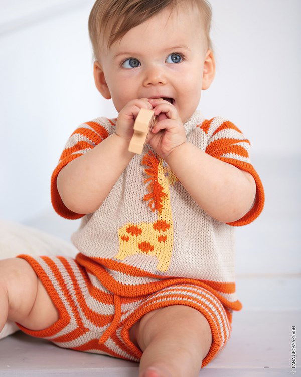 Breipatroon Lana Grossa short met strikkoord in de taille. Dit in tricotsteek gebreide korte broekje, is gemaakt van het garen Lana Grossa Elastico.